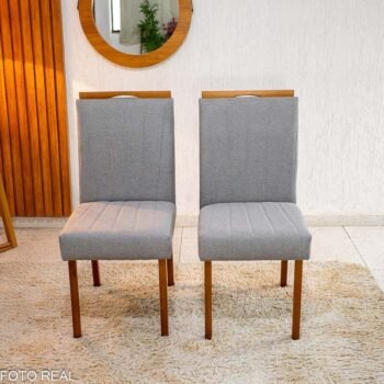 3{%%}Descrição{%%}2 Cadeiras Isabela Linho Cinza 05 Madeira Maciça KM Decor – Entregue Montada