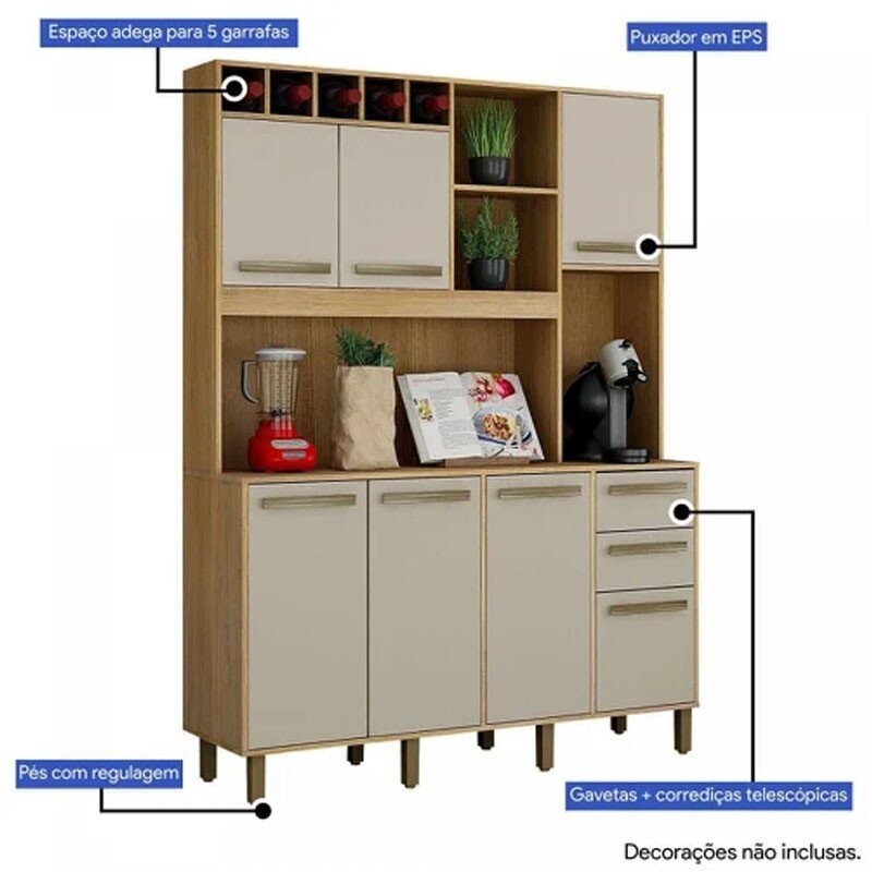 3{%%}Descrição{%%}Armário de Cozinha Granada Cinamomo/Off White Larg. 1.46m Valdemoveis