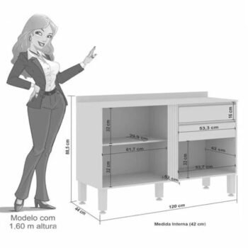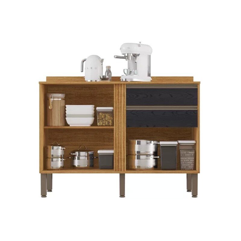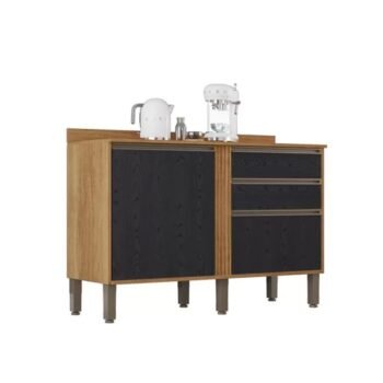 3{%%}Descrição{%%}Balcão Cozinha Pérola Cinamomo/Preto 2 Portas 2 Gavetas Larg. 1.20m – Sallêto