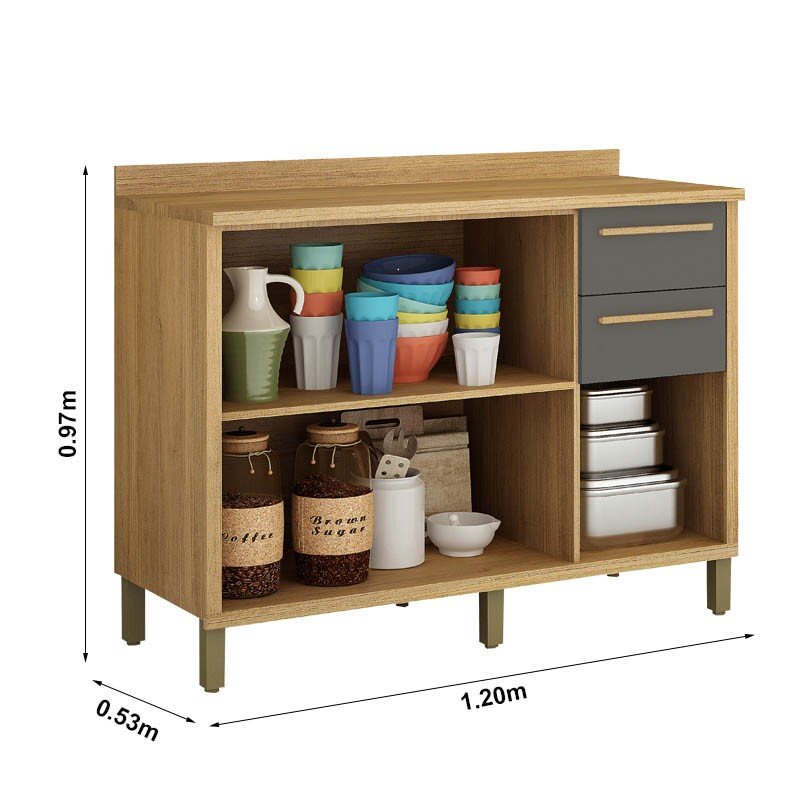 Balcão Cozinha Torino Cinamomo/Grafite 3 Portas 2 Gavetas Larg. 1.20m – Valdemoveis