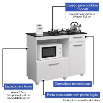 – Espaço para Cooktop(LxP): 55,1 cm x 37,8 cm