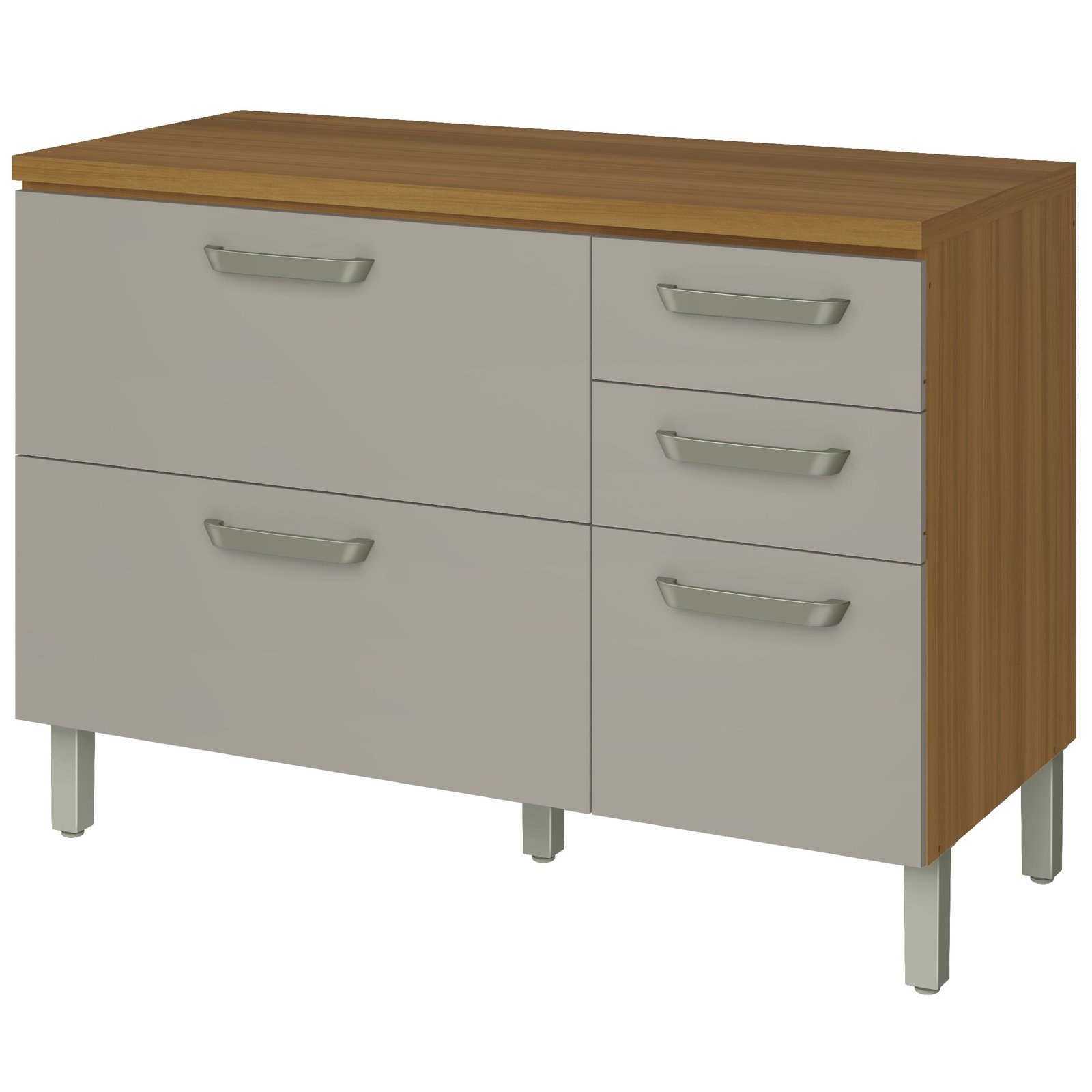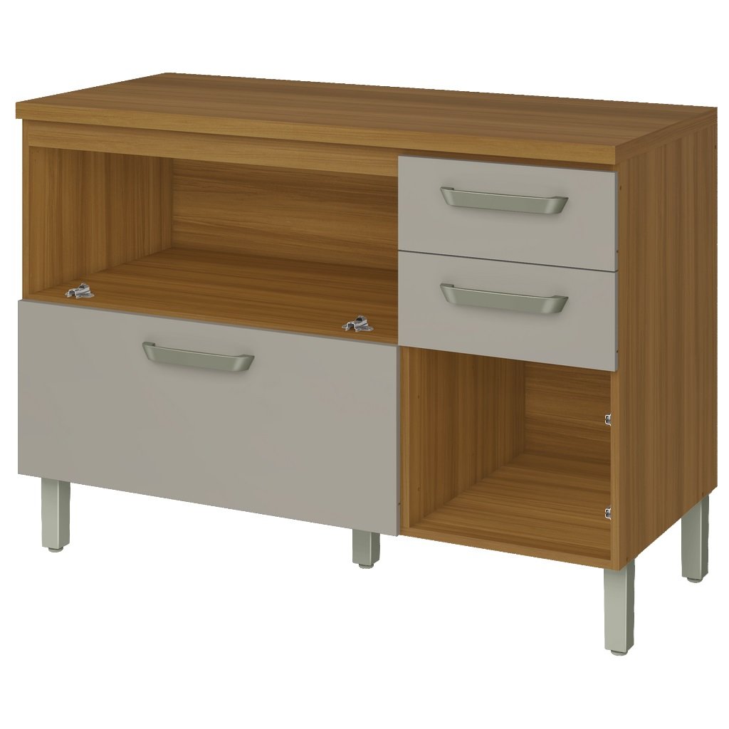 – Balcão 120 cm com duas portas, duas gavetas e um gavetão