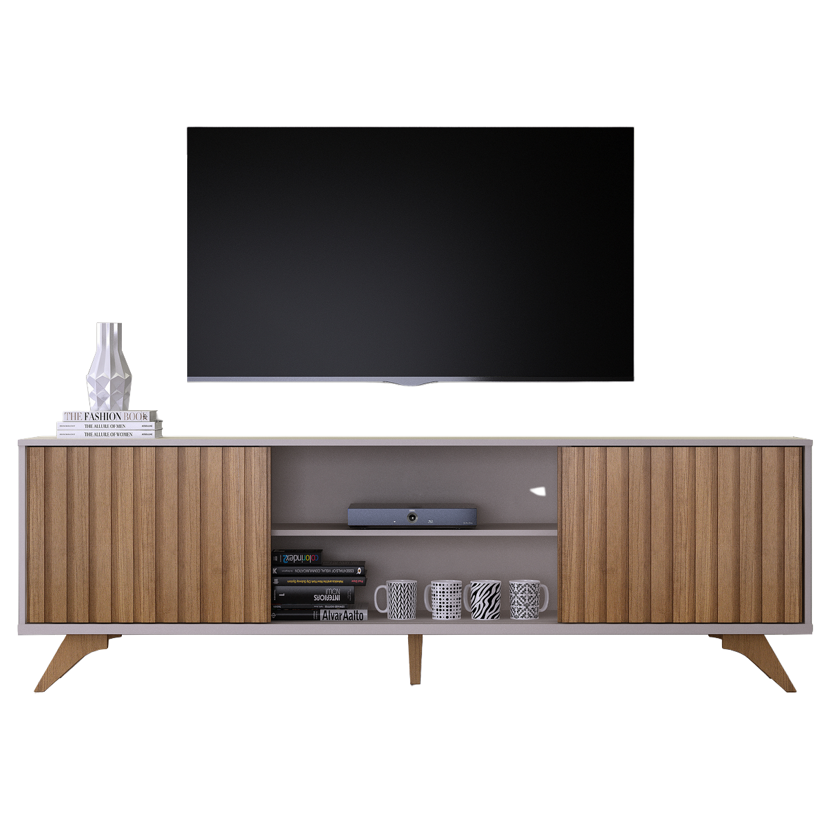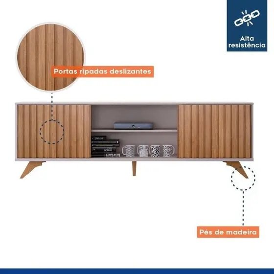 Bancada até 65″ Manaus Off White/Cinamono – VALDEMÓVEIS