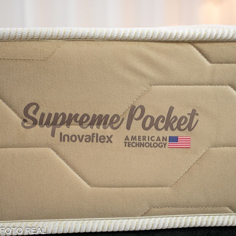 3{%%}Descrição{%%}Box Solt. Sued Preto Nosso Sonho + Colchão Solteiro Supreme Pocket Molas Ensacadas 88x188x62 – Inovaflex | Suporta até 120kg