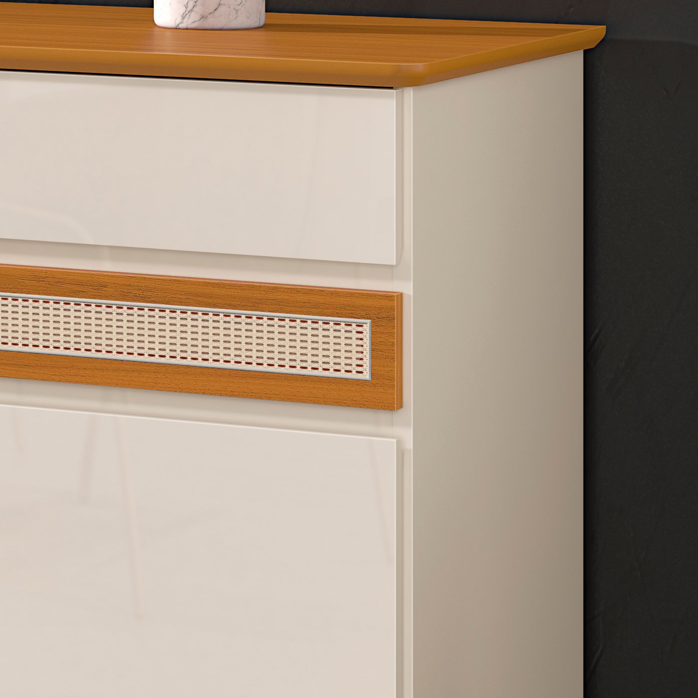 – Acabamento em tela rattan
