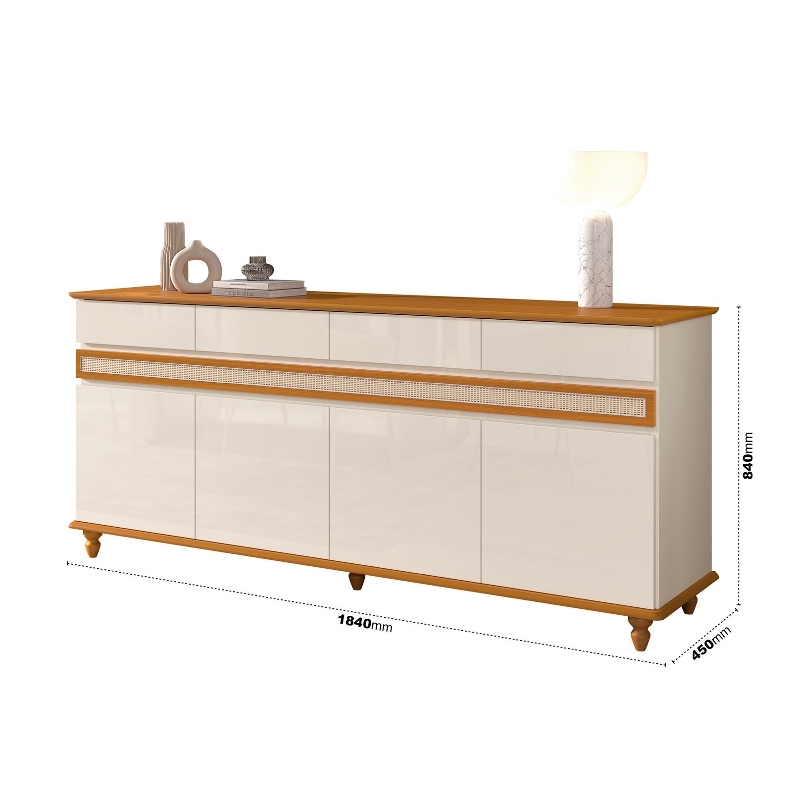 Buffet 4 Portas Açores Off White/Cedro – EDN MÓVEIS
