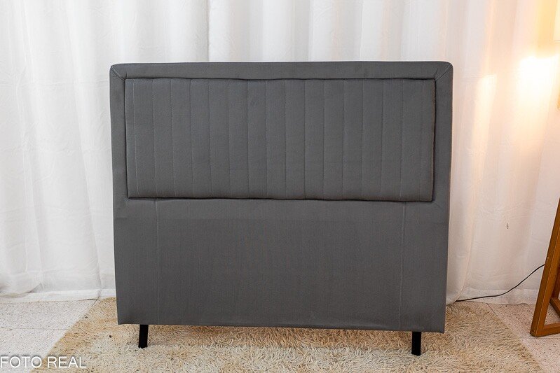 3{%%}Descrição{%%}Cabeceira Casal Cintia Veludo Cinza Larg. 1.40m