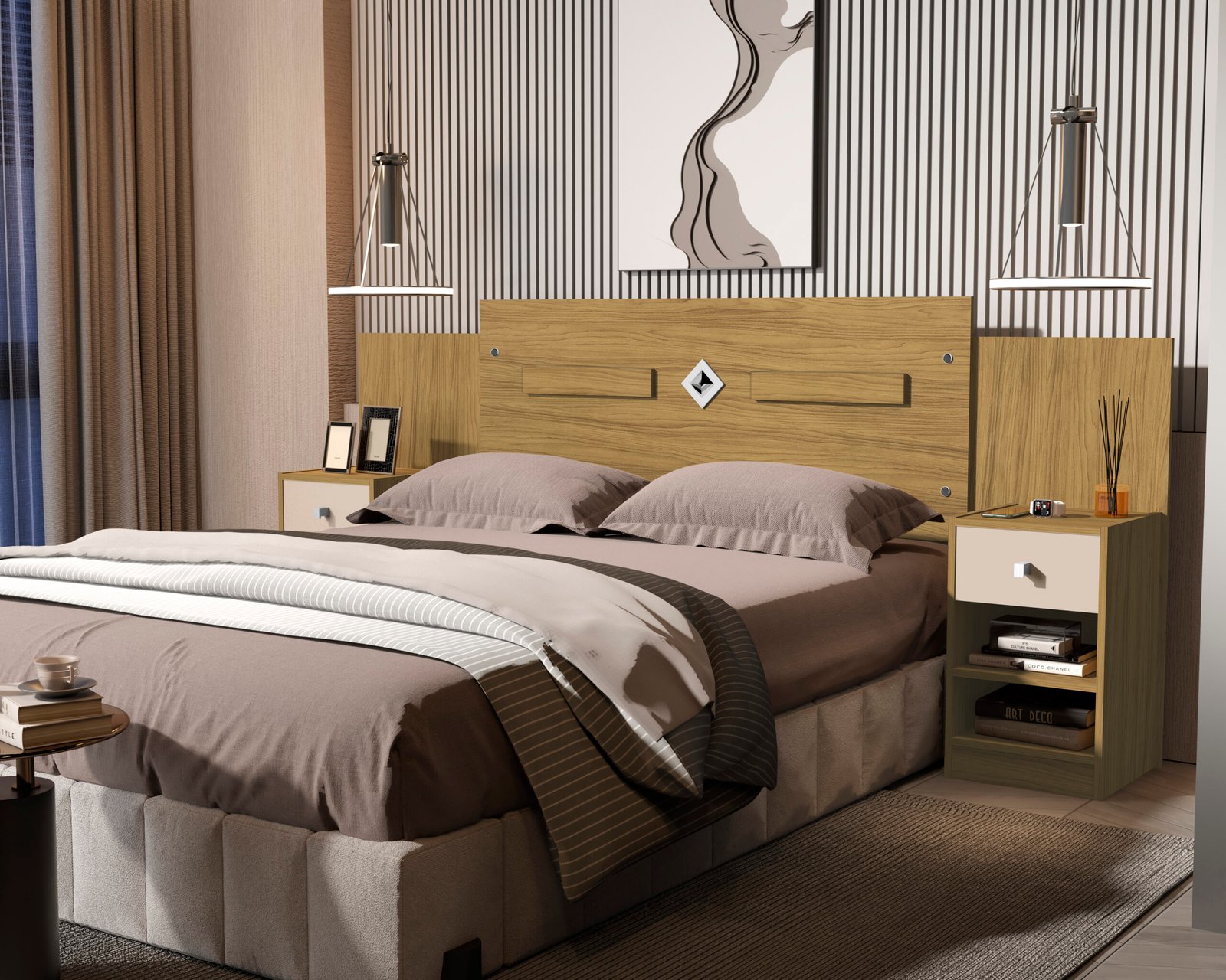 Cabeceira Casal/Queen Lara Freijó/Off White/Freijó – MADEC/VJ MÓVEIS