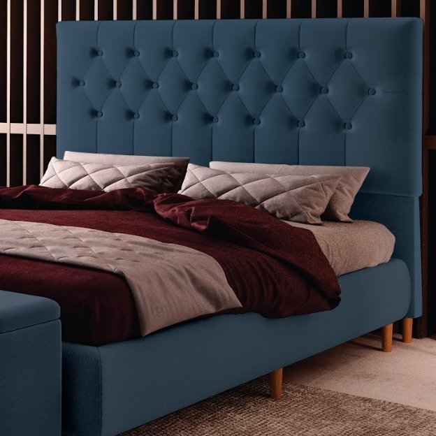 Cabeceira Casal Turim Veludo Azul B024 – LARMÓVEIS/TREVO ESTOFADOS