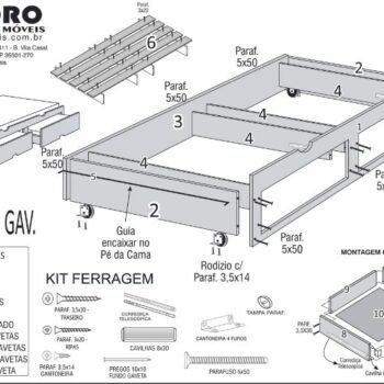 – Cama auxiliar com duas gavetas de abertura total de 40 cm