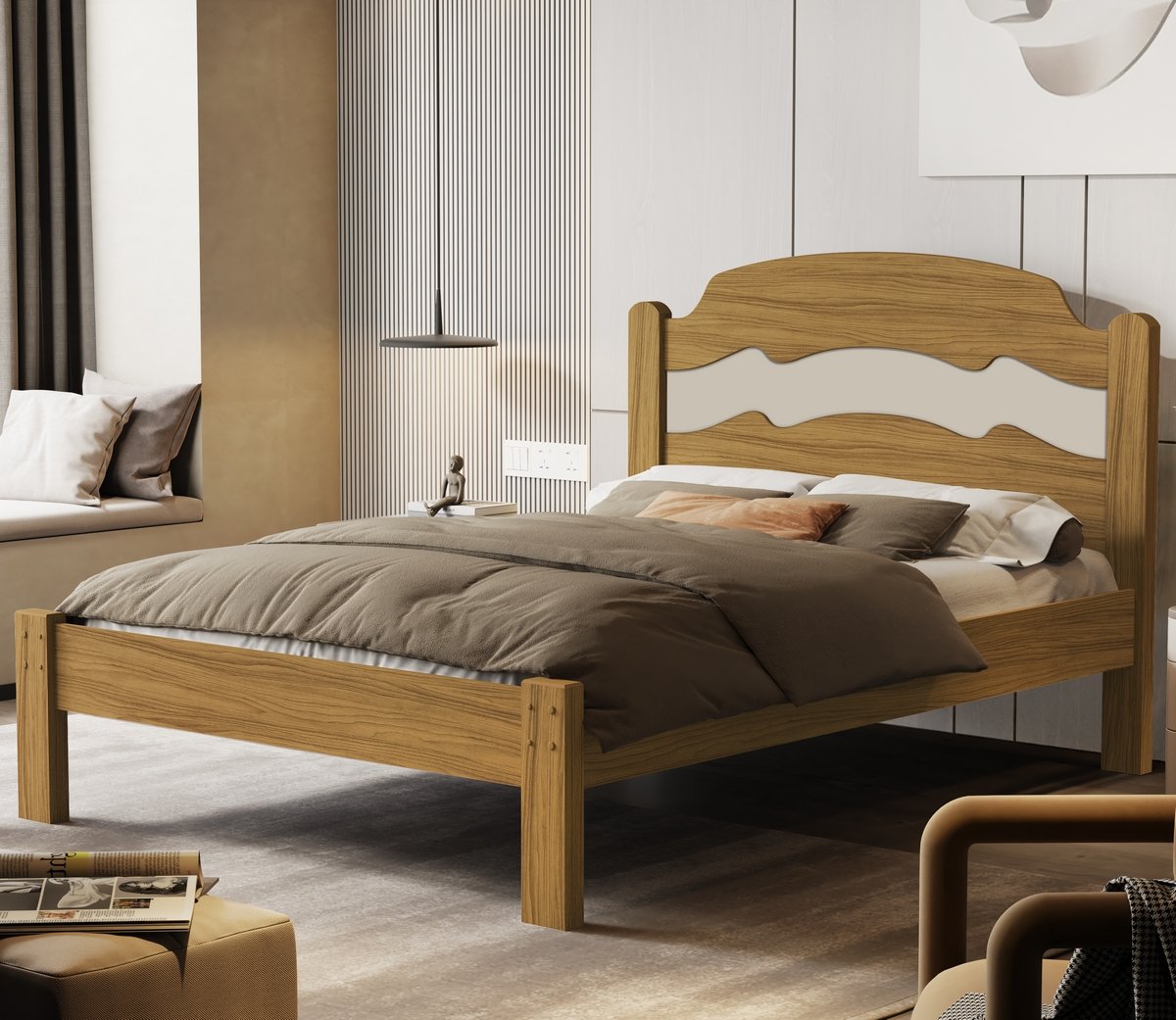 Cama Casal/Viúva Íris Nature/Off White/Nature – VJ MÓVEIS