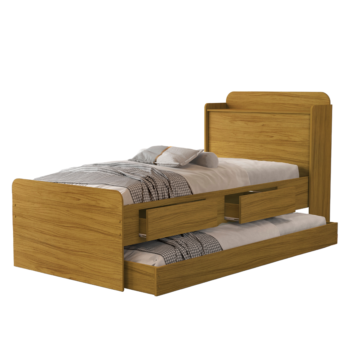 Cama Solteiro Baú Tamires + Auxiliar Mili Nature – MADEC/VJ MÓVEIS