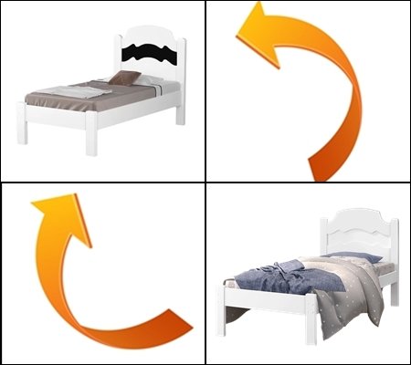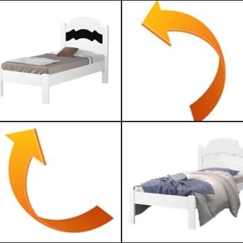 – Detalhe da cabeceira reversível com duas opções de cores