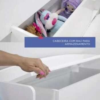 – Cabeceira com baú para melhor aproveitamento do espaço.