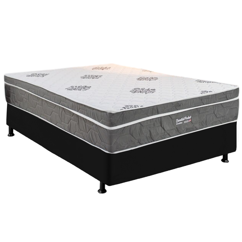 Colchão Casal Essential Pocket D26 + Base Box Simples Corino Preto – INOVAFLEX + BIOSTAR
