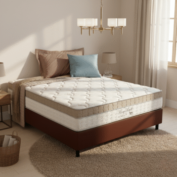 Colchão Casal King Best D28 + Base Box Simples Corino Marrom – ANJOS COLCHÕES + ALTO NÍVEL CAMAS E COLCHÕES