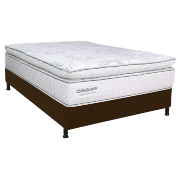 Colchão Casal New Freedom + Base Box Simples Corino Marrom – ORTOBOM + BIOSTAR