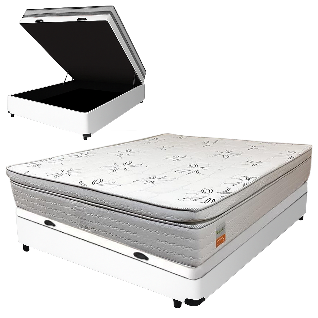 Colchão Casal New York D33 + Base Box Baú Corino Branco – ECOTEC + BIOSTAR