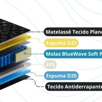 – Tampo em poliéster matelassê + fibra siliconada
