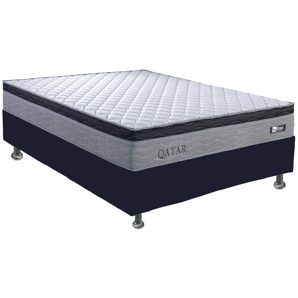 Colchão Casal Qatar D28 + Base Box Simples Corino Preto – DESIGN COLCHÕES + BIOSTAR