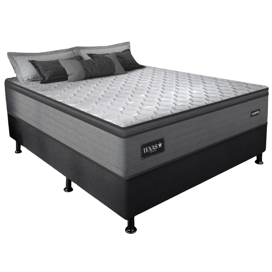 Colchão Casal Texas D28 + Base Box Simples Corino Preto – GAZIN COLCHÕES + ALTO NÍVEL CAMAS E COLCHÕES