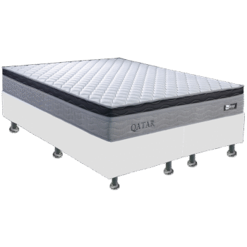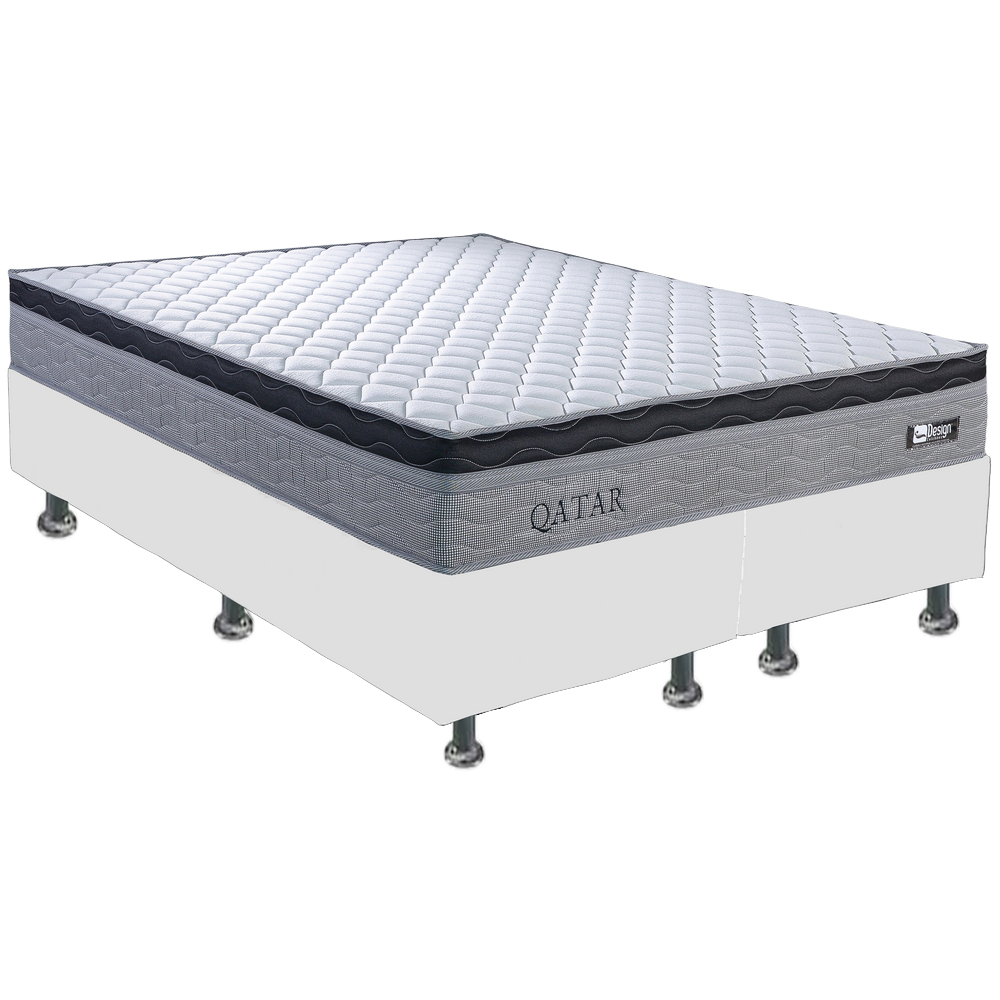 Colchão Queen Qatar D28 + Base Box Simples Corino Branco – DESIGN COLCHÕES + ALTO NÍVEL CAMAS E COLCHÕES