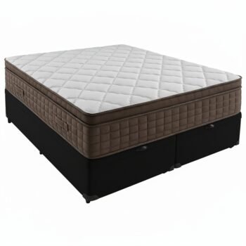Colchão Queen Star One D28/AG D70 + Base Box Baú Corino Preto – ANJOS COLCHÕES + ALTO NÍVEL CAMAS E COLCHÕES