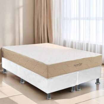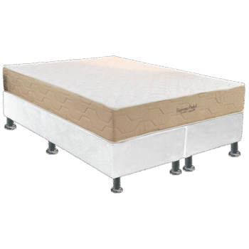 Colchão Queen Supreme Pocket D26 + Base Box Simples Corino Branco – INOVAFLEX + ALTO NÍVEL CAMAS E COLCHÕES