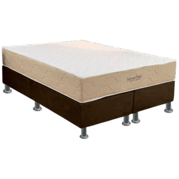 Colchão Queen Supreme Pocket D26 + Base Box Simples Corino Marrom – INOVAFLEX + ALTO NÍVEL CAMAS E COLCHÕES