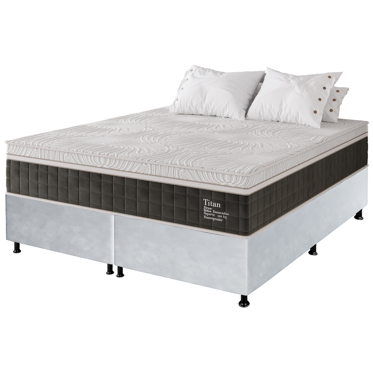 Colchão Queen Terapêutico Massageador Titan D28 + Base Box Simples Corino Branco – VIERO MÓVEIS + ALTO NÍVEL CAMAS E COLCHÕES
