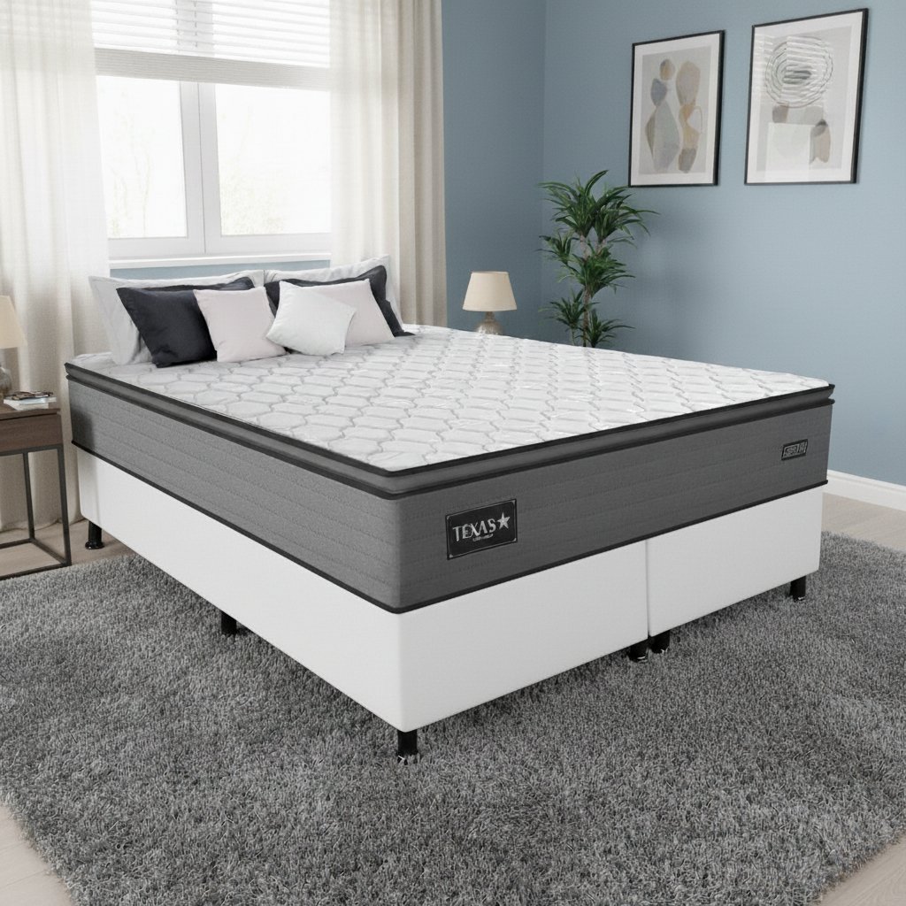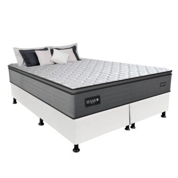 Colchão Queen Texas D28 + Base Box Simples Corino Branco – GAZIN COLCHÕES + ALTO NÍVEL CAMAS E COLCHÕES