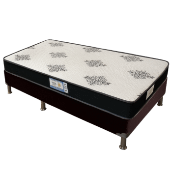 Colchão Solteiro Light D20 + Base Box Simples Corino Marrom – ECOTEC + ALTO NÍVEL CAMAS E COLCHÕES