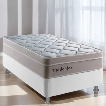 Colchão Solteiro Tiradentes D28 + Base Box Simples Corino Branco – COLCHOMINAS + ALTO NÍVEL CAMAS E COLCHÕES