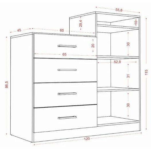 – Quatro gavetas com corrediças metálicas