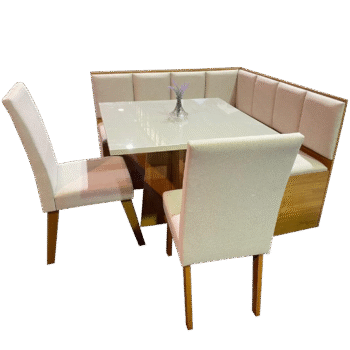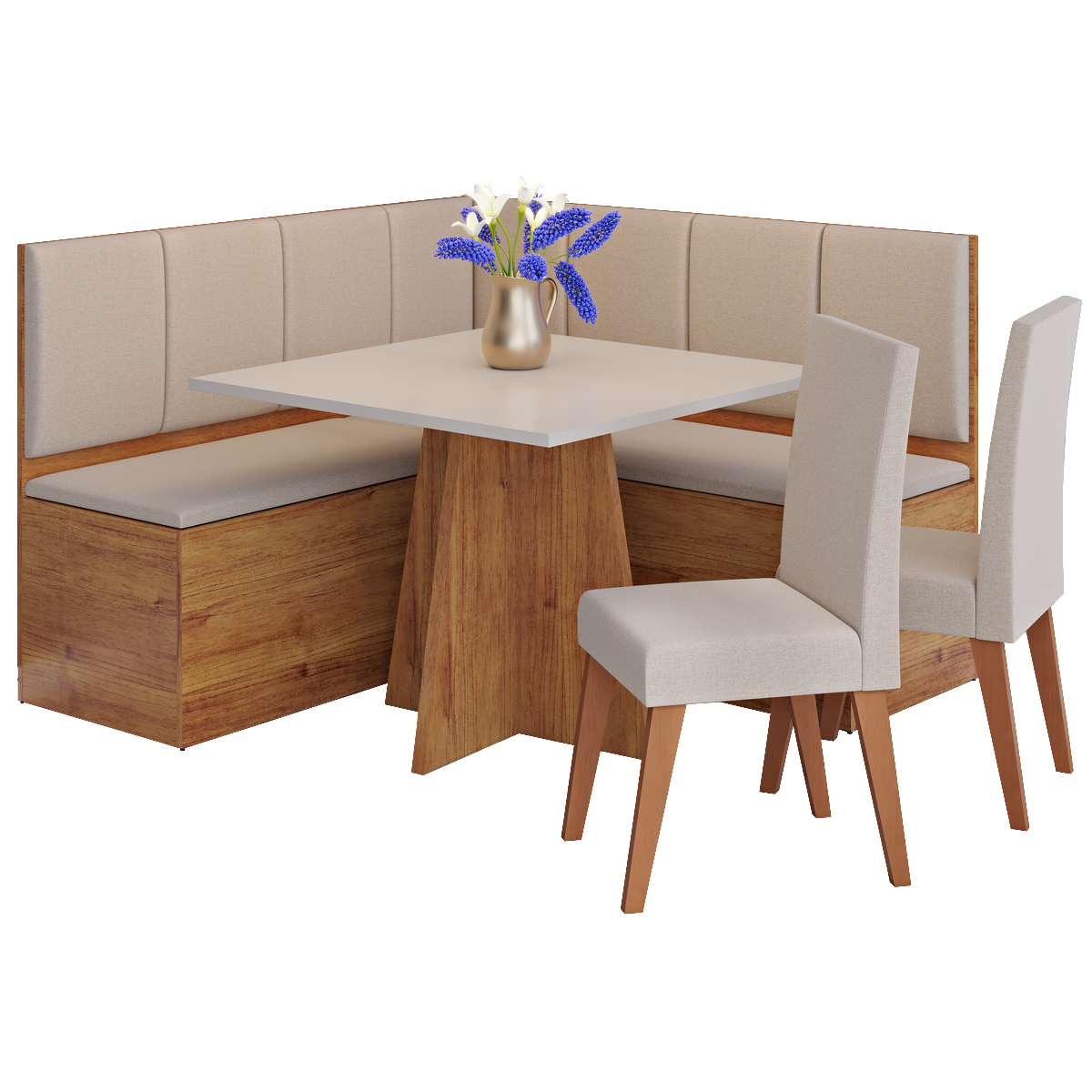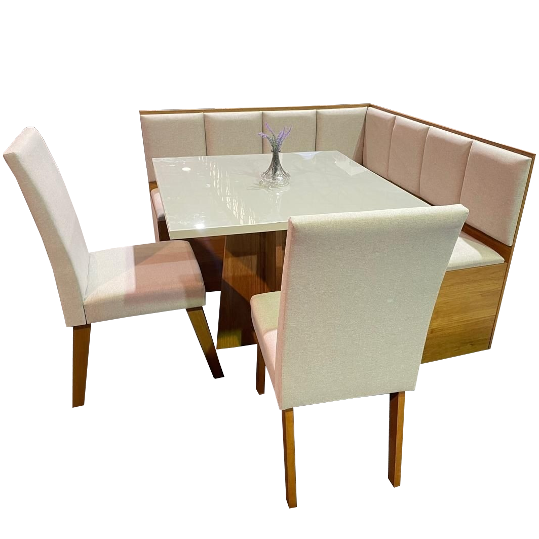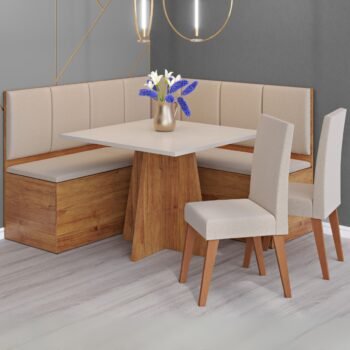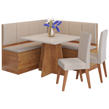 Conjunto Canto Alemão + Mesa Mon/Soberano Mel/Blonde + 2 Cadeiras Milão Mel/Linho Bronze – VIERO MÓVEIS