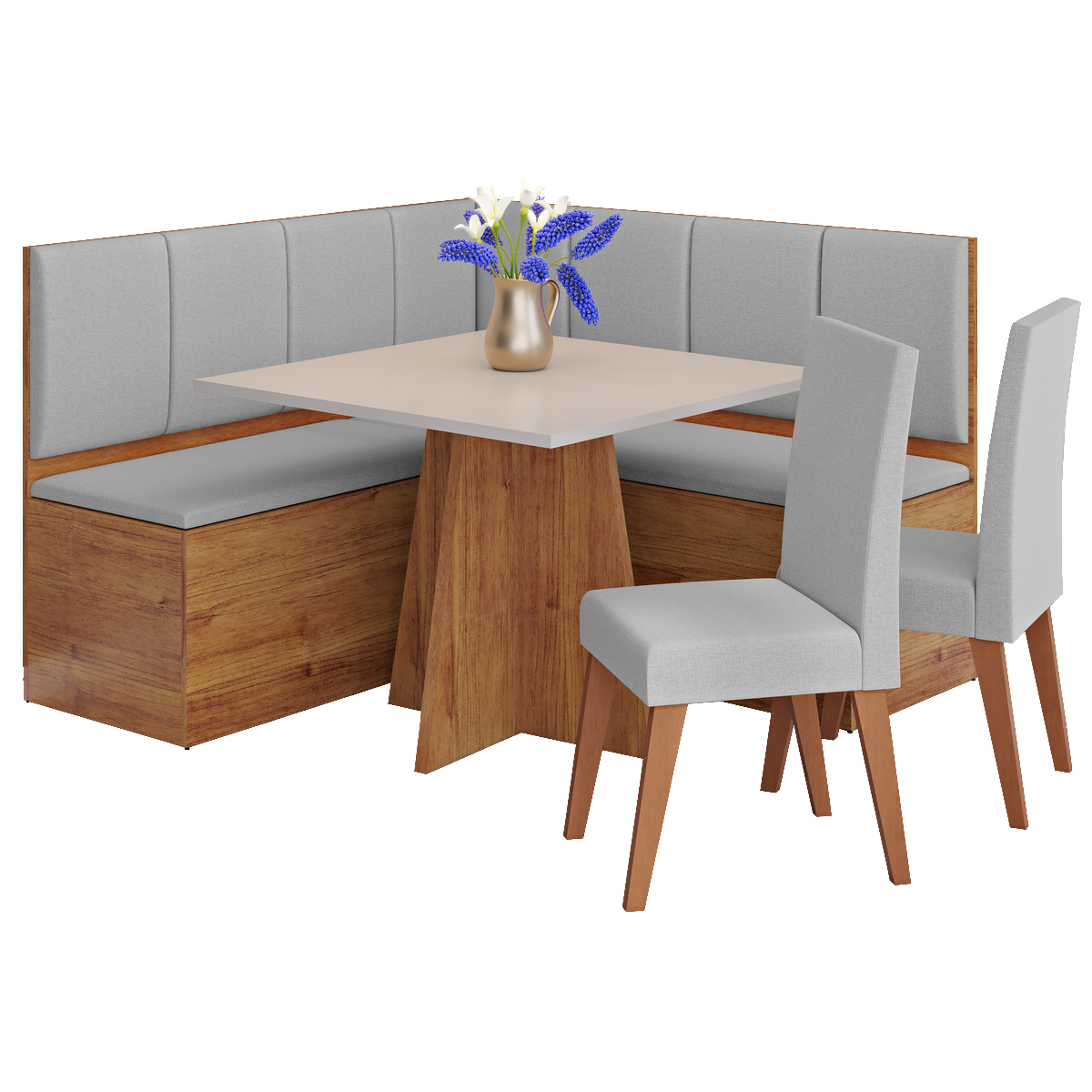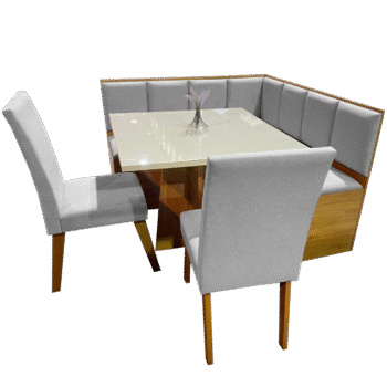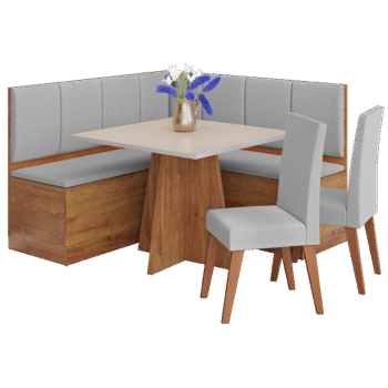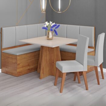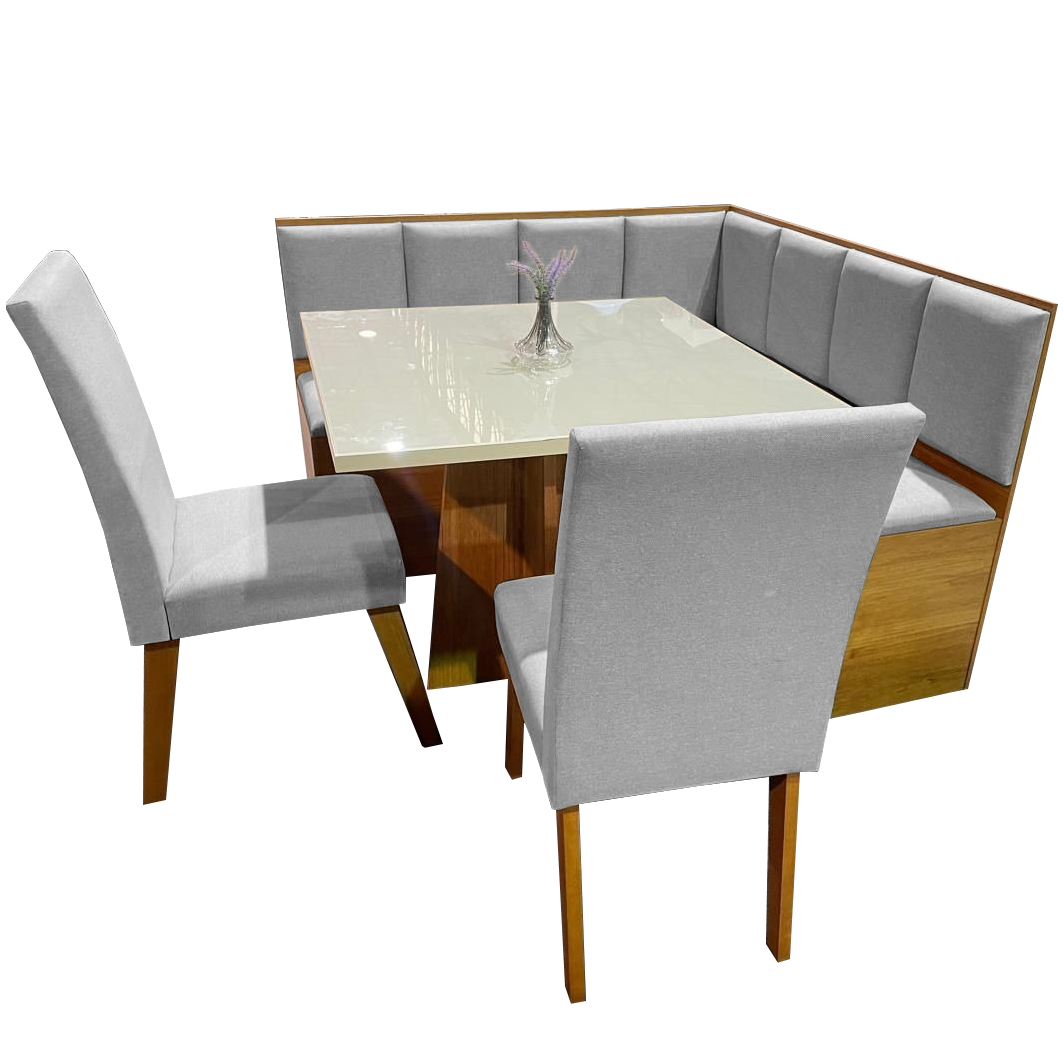 Conjunto Canto Alemão + Mesa Mon/Soberano Mel/Blonde + 2 Cadeiras Milão Mel/Linho Inox – VIERO MÓVEIS