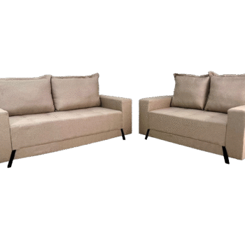 Conjunto Sofá 2 e 3 Lugares Ref.8100 Veludo Bege – BOARETO ESTOFADOS