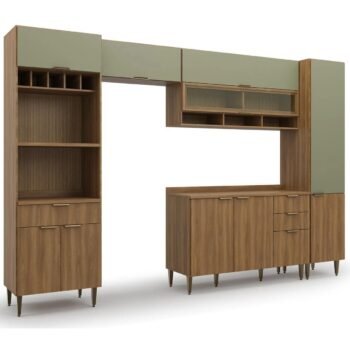 Cozinha 5 Peças Paris Nogal Manchester/Verde Matte – BATROL MÓVEIS