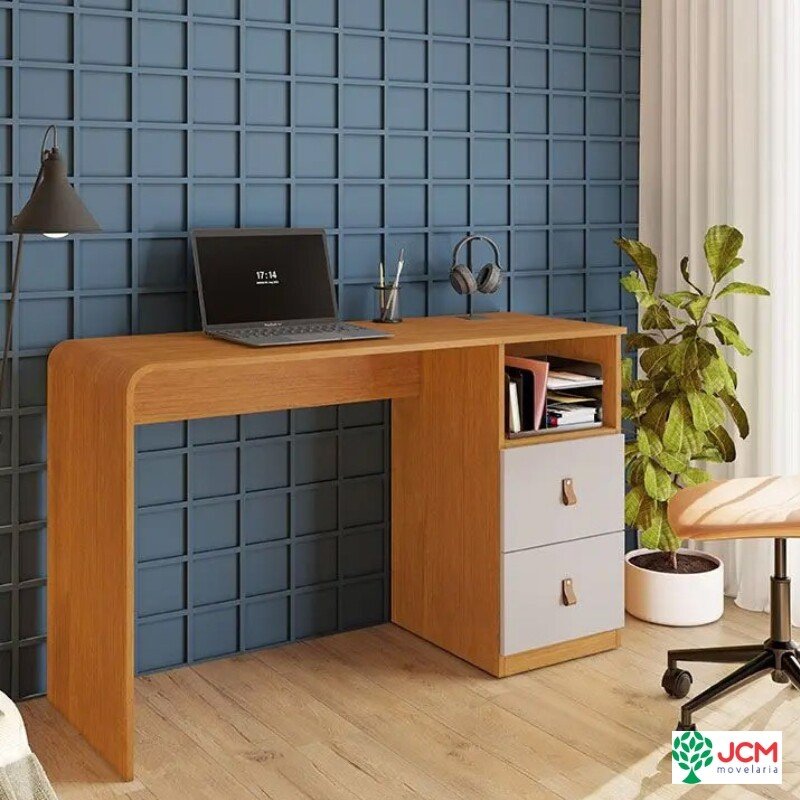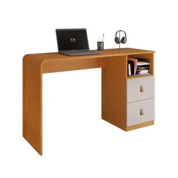 3{%%}Descrição{%%}Escrivaninha Alice Larg. 1.27m Cinamomo/Off 2 Gavetas – JCM