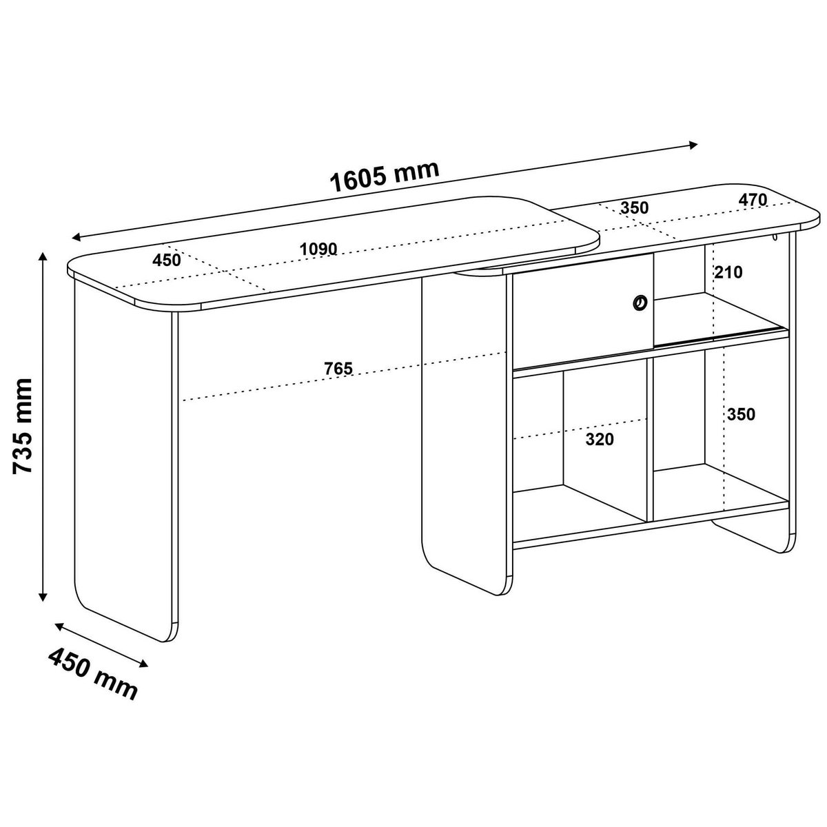 – Estrutura flexível: pode ser usada em L, reta ou fechada, graças ao tampo com rotação 360°