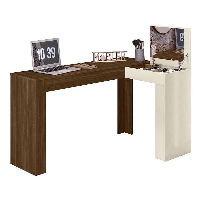 3{%%}Descrição{%%}Escrivaninha Penteadeira de Canto Jade Freijo/Off – Mobler