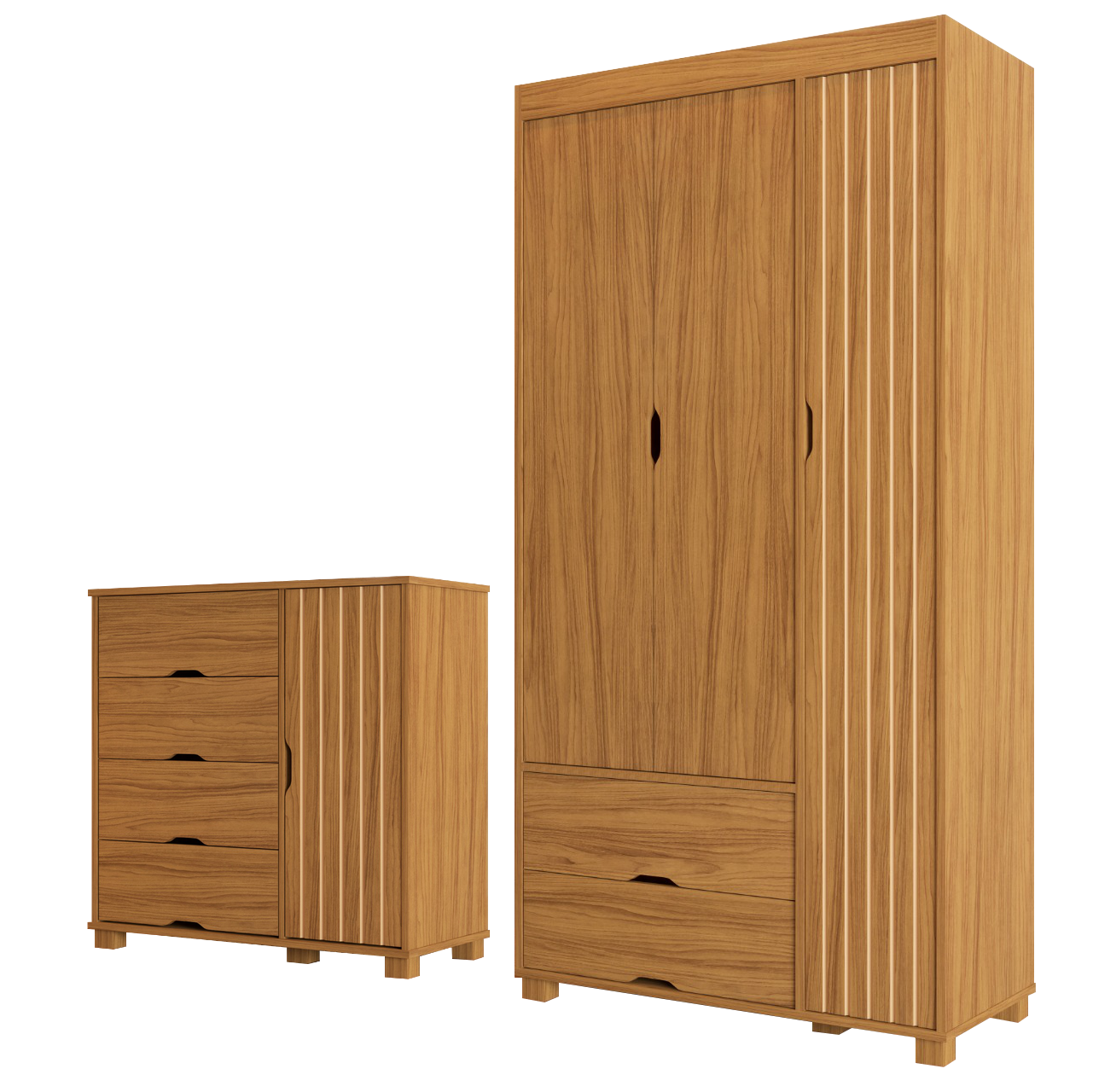 Guarda-Roupa 3 Portas + Cômoda 4 Gavetas com Sapateira Bela