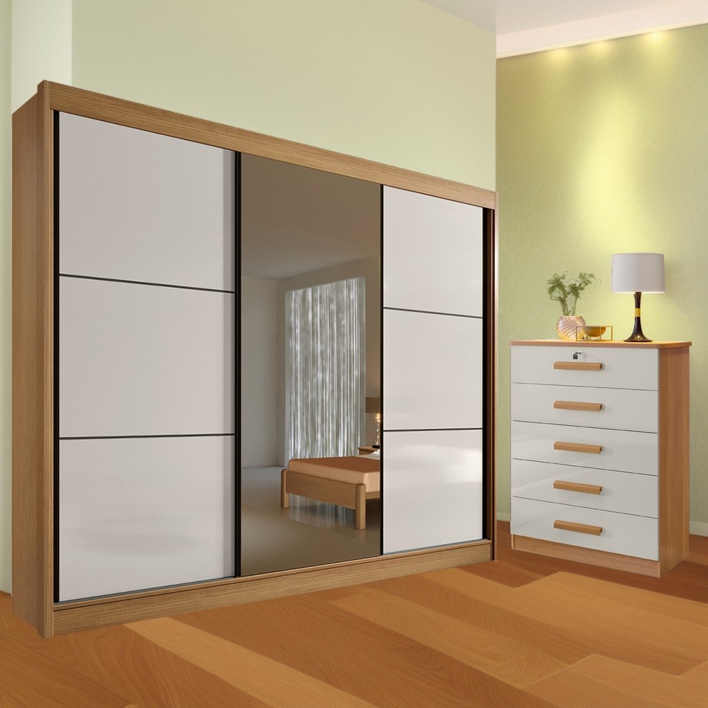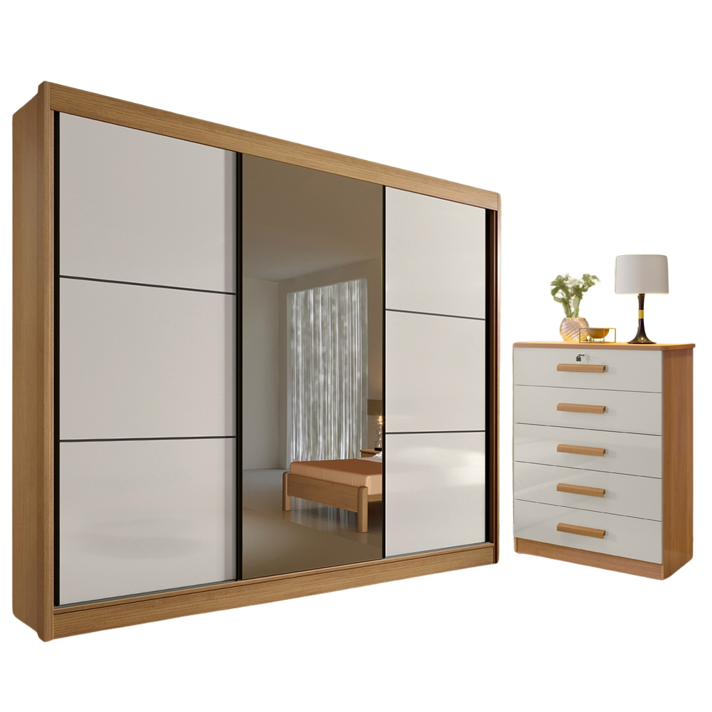 Guarda-Roupa 3 Portas Los Angeles + Cômoda Ipanema Cinamono/Off White – D’DORO MÓVEIS