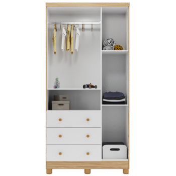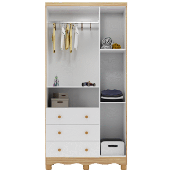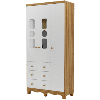 Guarda-Roupa 3 Portas Tedy Branco Brilho/Amêndoa – PEROBA MÓVEIS