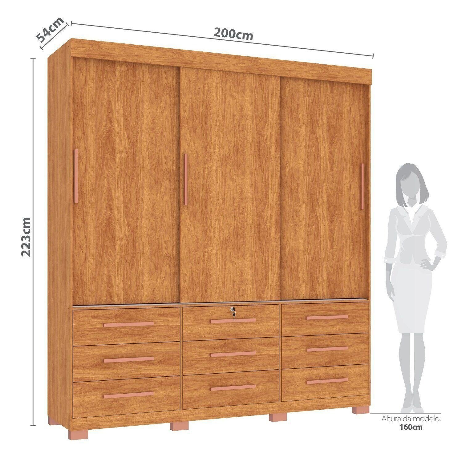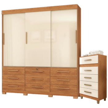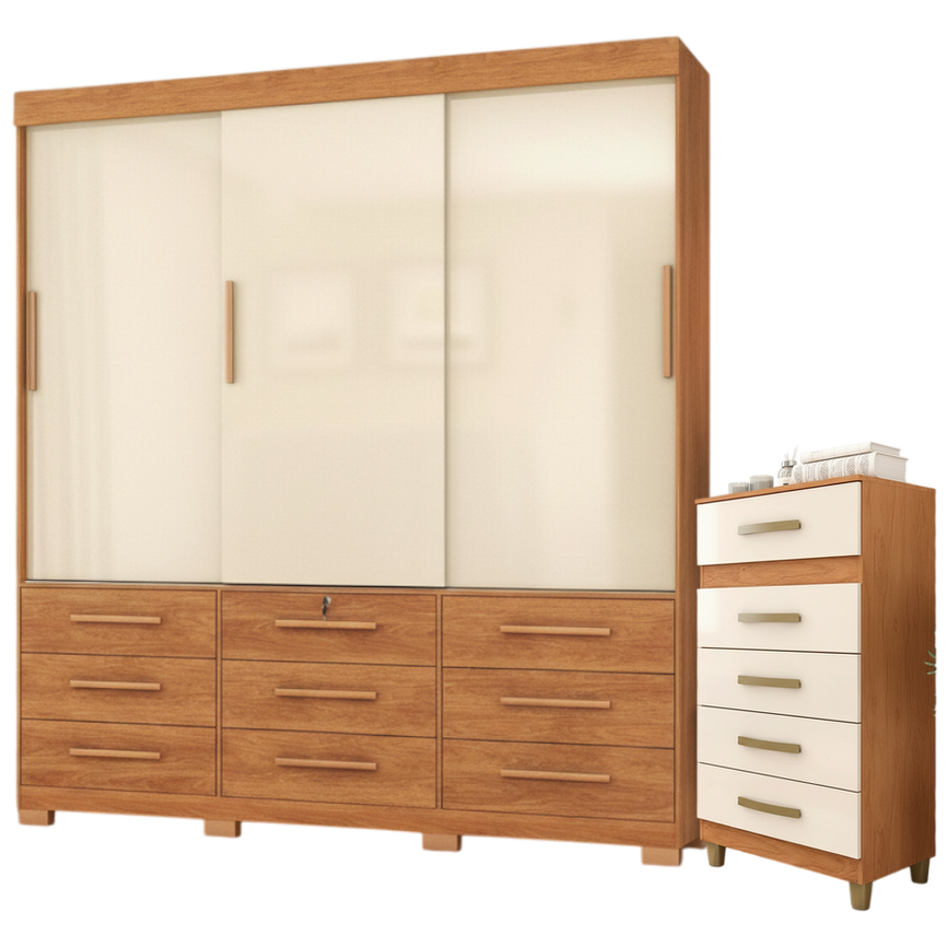 Guarda-Roupa 3 Portas Toronto RP1930 + Cômoda 5 Gavetas Malta CO250 Cinamomo/Off White/Cinamomo – FELLICCI