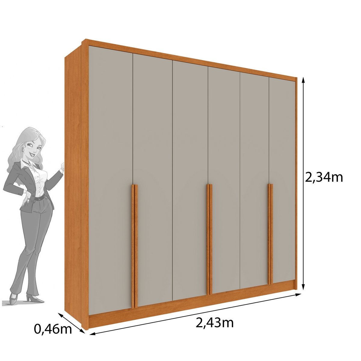 Guarda-Roupa 6 Portas Fortuna 2,43 m Cinamono/Off White – TCIL