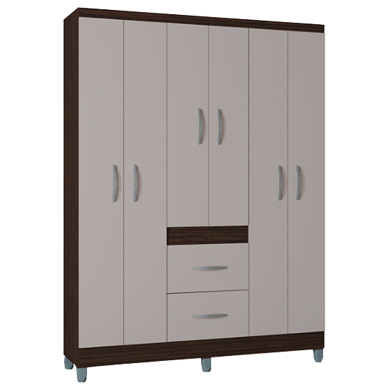 Guarda-Roupa 6 Portas Milão 1,35 m Chocolate/Off White – POQUEMA