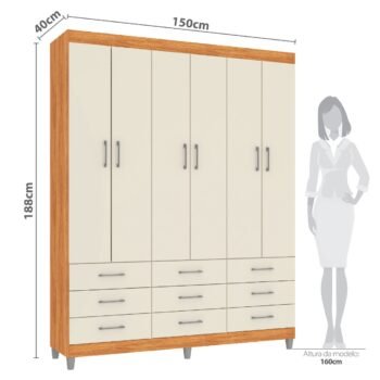 Guarda-Roupa 6 Portas Paraty 3690 1,50 m Cinamomo/Off White – FELLICCI