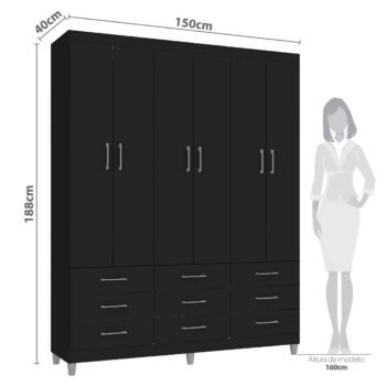 Guarda-Roupa 6 Portas Paraty 3690 1,50 m Preto – FELLICCI