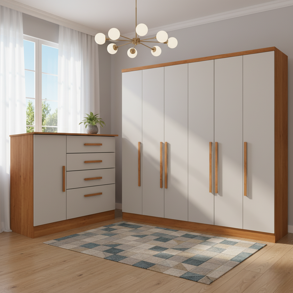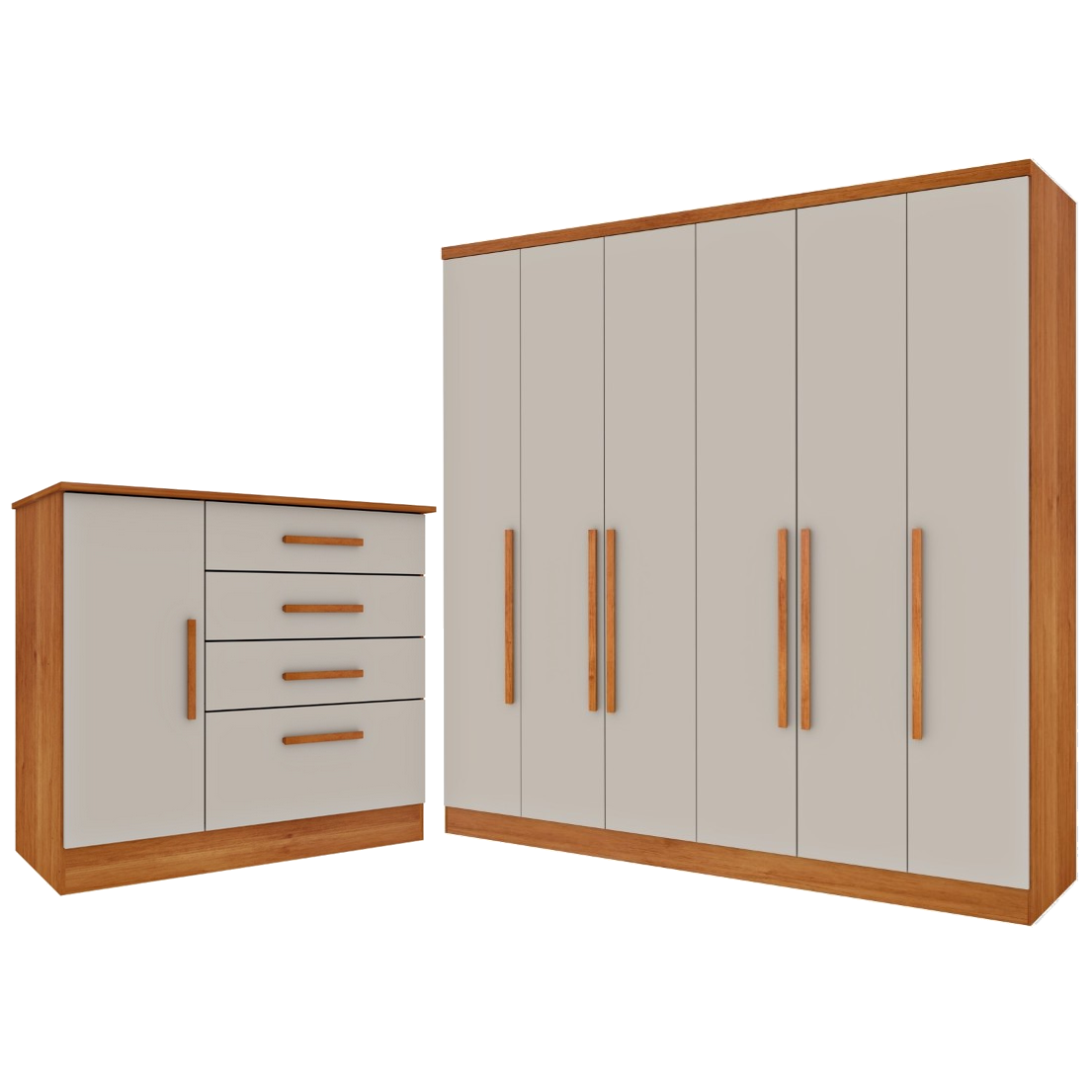Guarda-Roupa 6 Portas Veneza/Padova + Cômoda Chicago/Berlim Cinamono/Off White – TCIL
